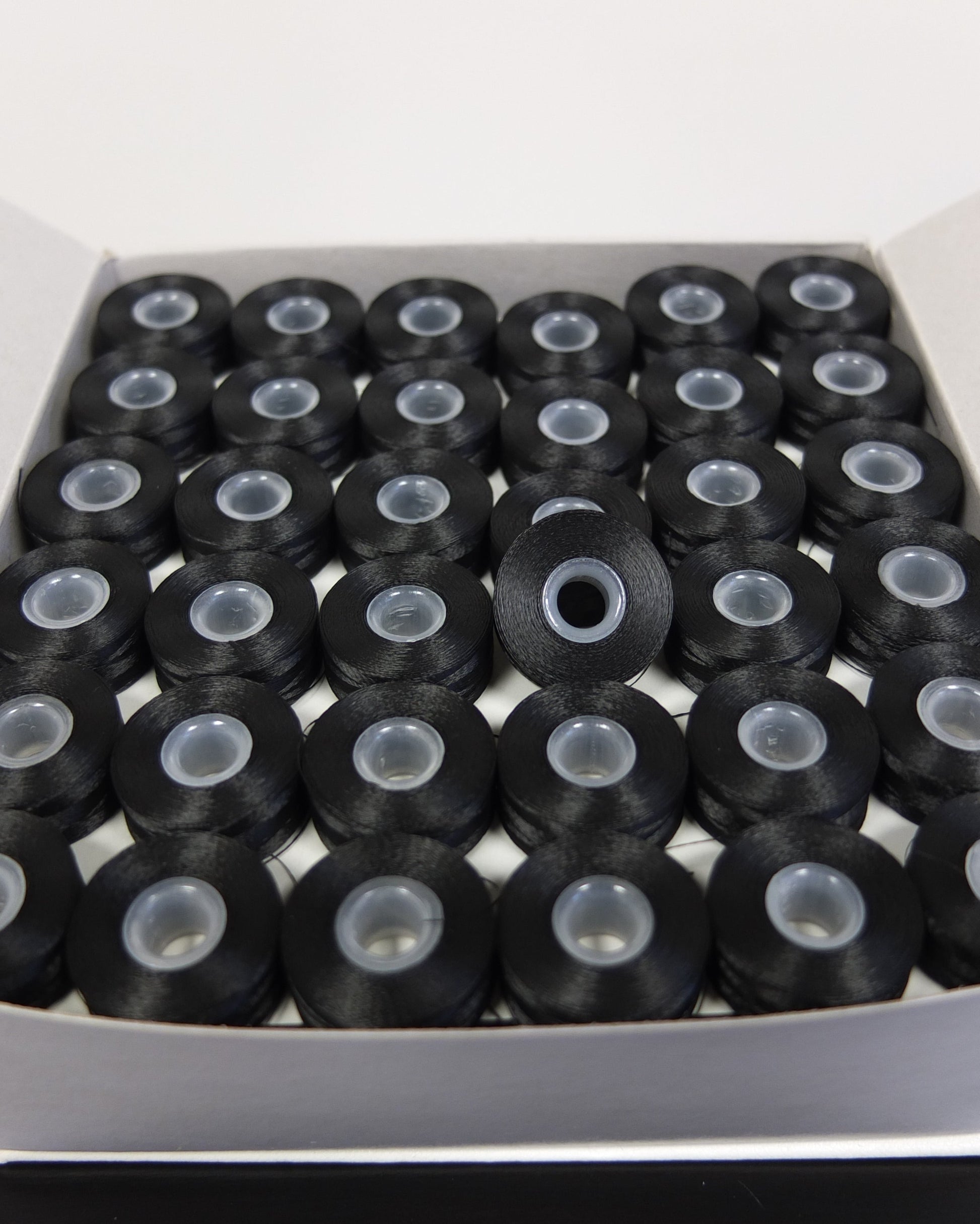 Professional black prewound bobbins without sides for maximum thread usage. The 132-yard capacity provides excellent run time while maintaining perfect tension throughout. Essential for dark garment embroidery where bobbin show-through must be eliminated.