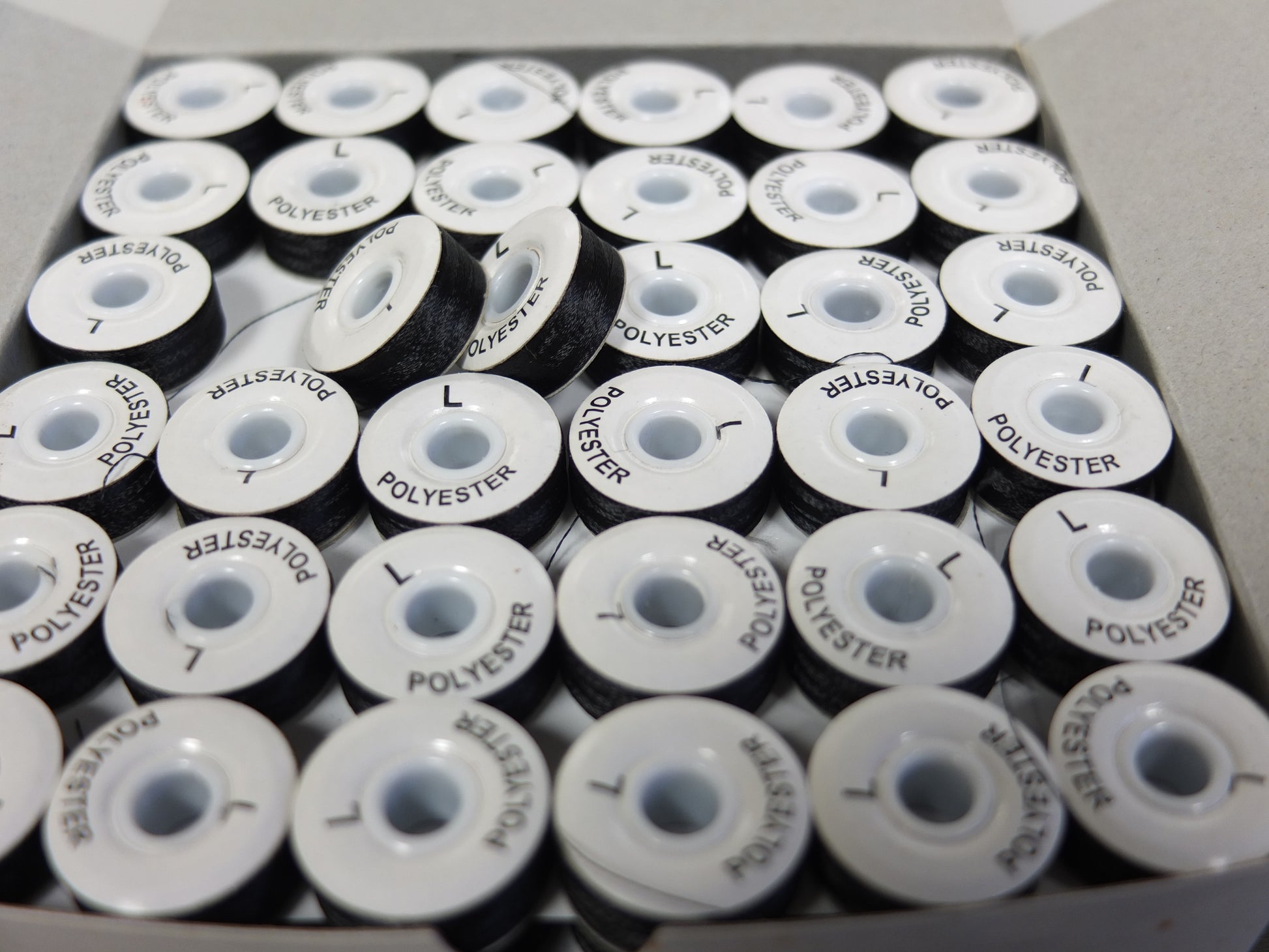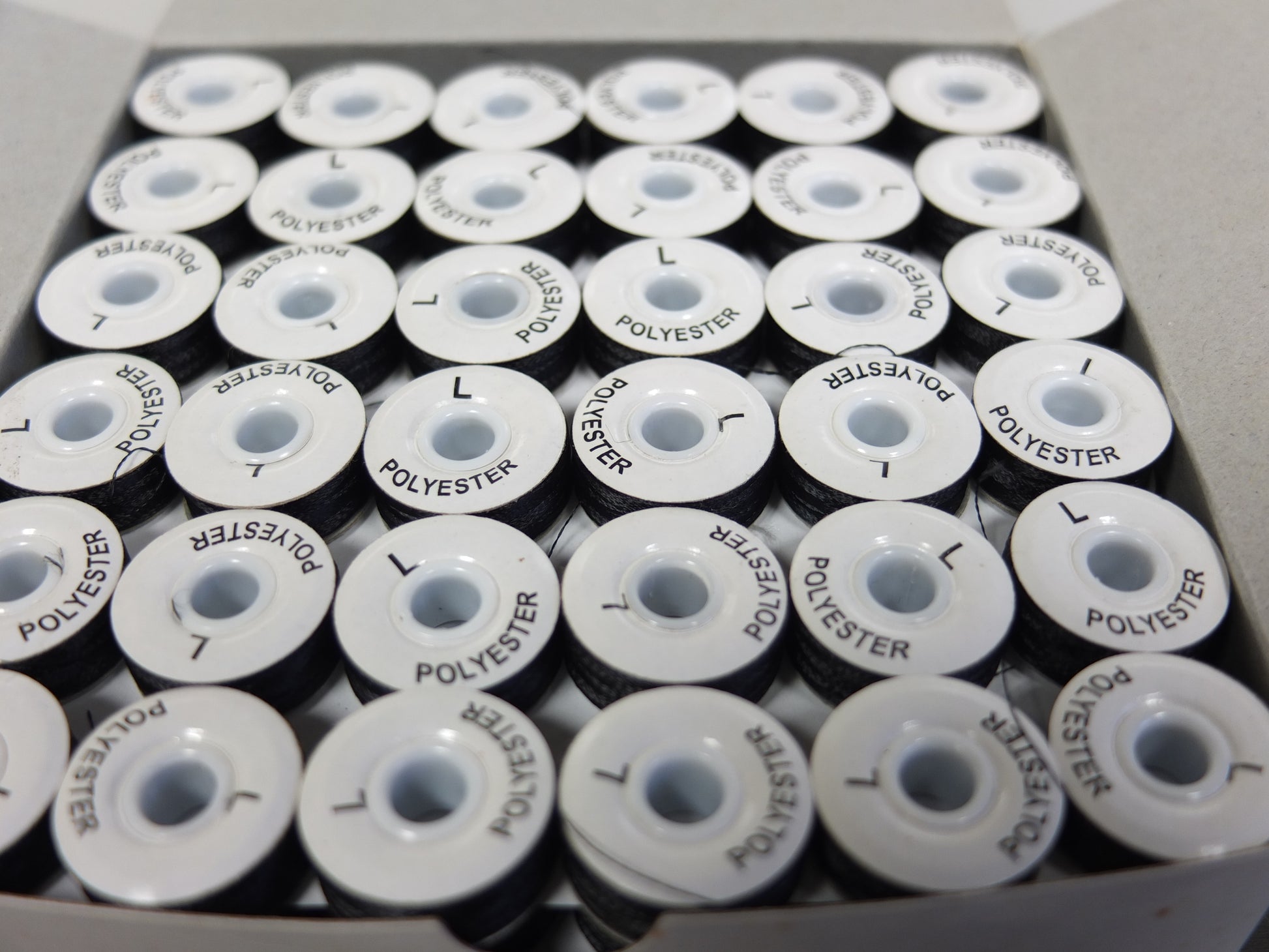 Black polyester prewound bobbins with protective sides for clean thread delivery. Ensures no color show-through on dark fabrics while maintaining professional stitch quality. The 132-yard capacity balances efficiency with convenient bobbin changes.